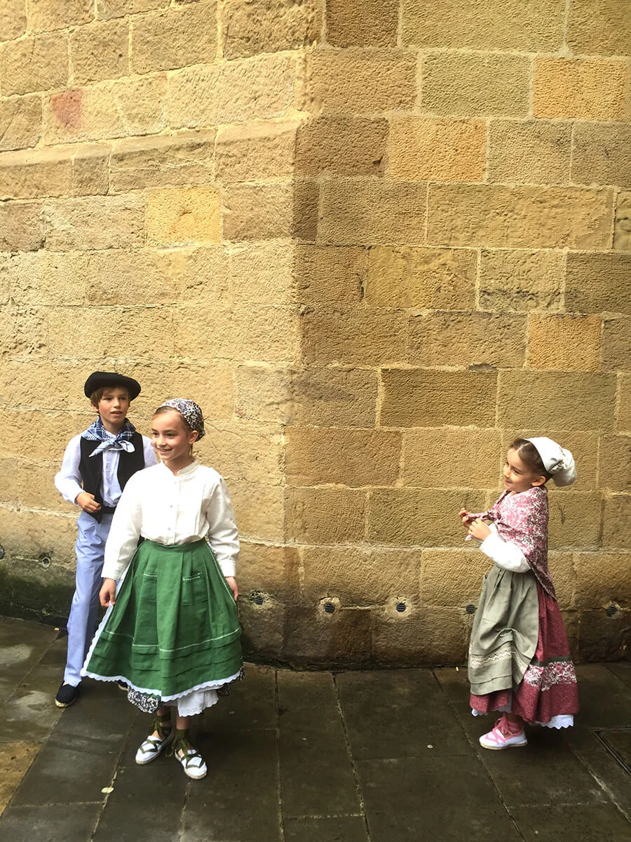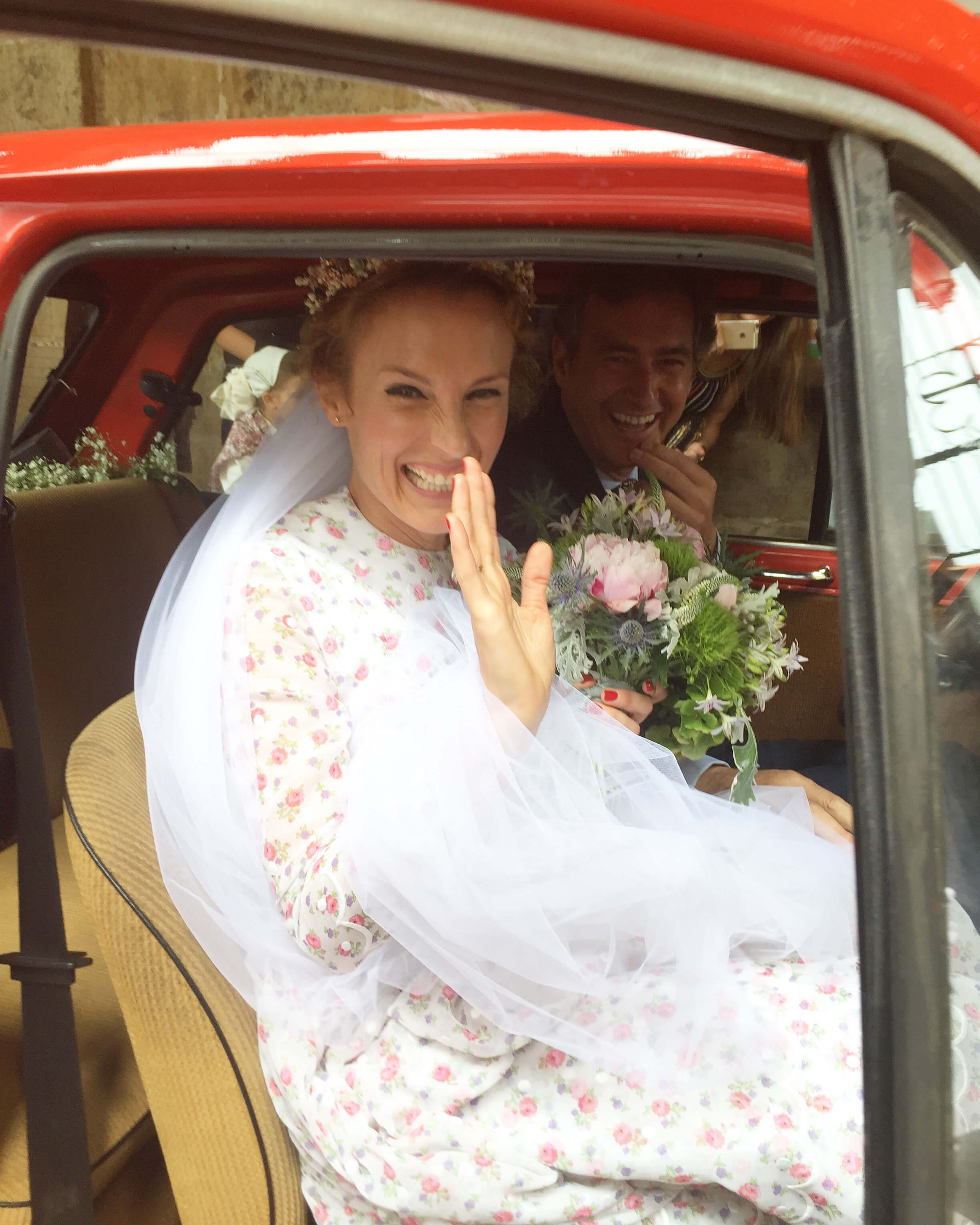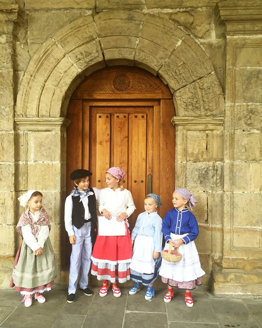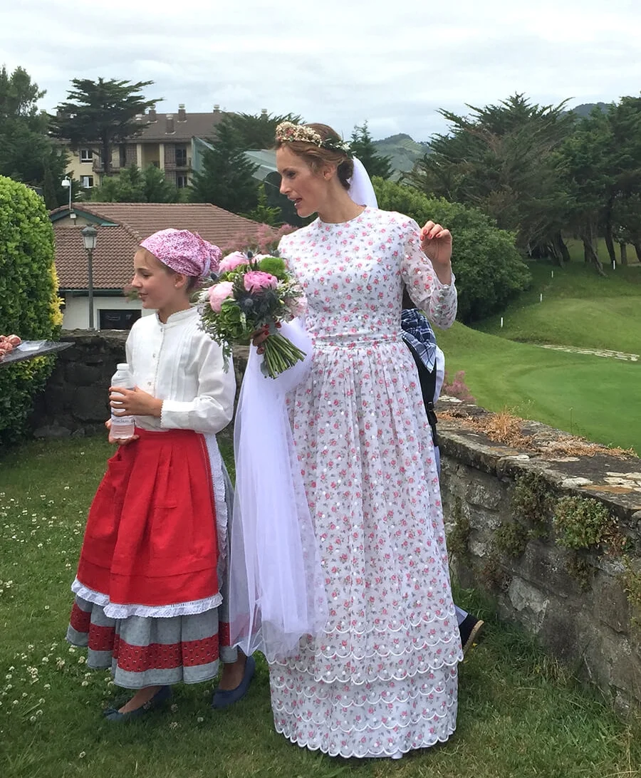 Sol is quite a special girl, and her wedding brought such joy to all of us who love her. Viri, her fortunate groom, and now husband is bright and handsome, and they just seem to make the perfect couple. The tasteful event was filled with pretty details from the flowers to the handmade soaps given as wedding favors, to even the tiny Fiat car borrowed from his friend Axel. Her dress had been worn by her mother Ana at her wedding, it was so bucolic and needed little adjustments to fit Sol perfectly. She had also chosen a sweet crown to hold her veil and all looked like a dream as we saw her walk inside the church. The whole event was just so authentic and the sweet kids were all dressed in Basque traditional costumes ('caseras') as they walked in front of the bride throwing flower petals from their tiny baskets. I had to leave early to catch a flight back to London, but left the party in full throttle mode, and from the reports I got, I know they all had a blast and Sol is just such a joyful newlywed, I am happy I got to share with her a very special day.